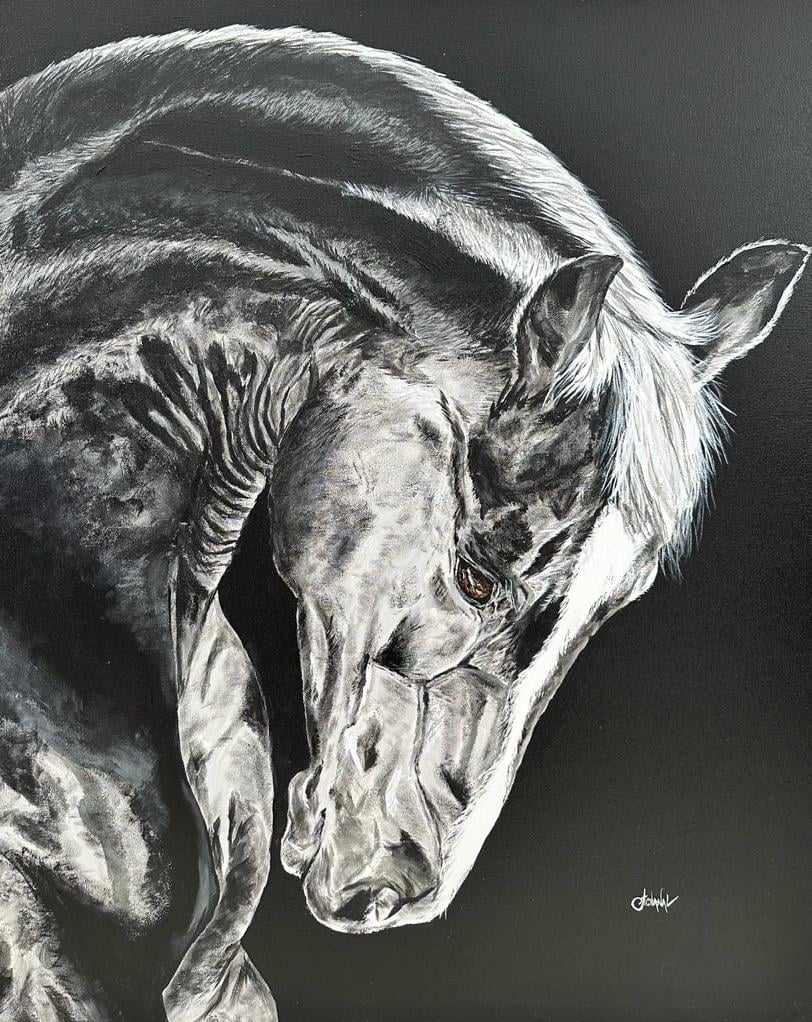 L’artiste confirme une sensibilité très proche de la nature et des animaux qui l’inspire particulièrement mais apprécie aussi la revisite de grandes œuvres, ce sont ses deux domaines de prédilection. Avec toujours un souci du détail exacerbé et la mise en lumière de ses palettes de gris.