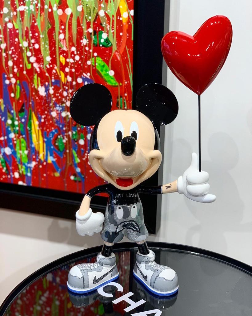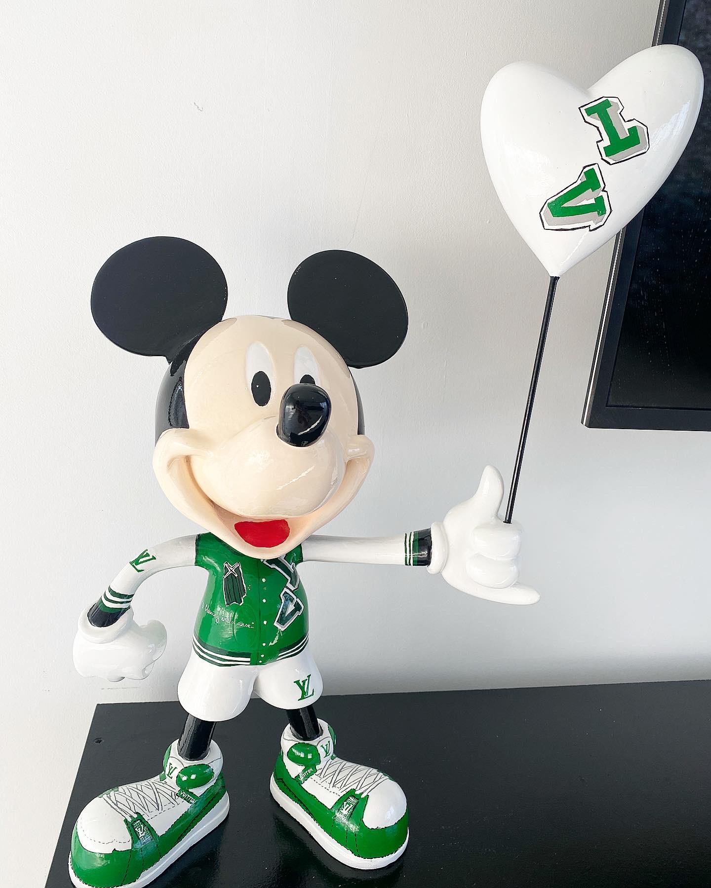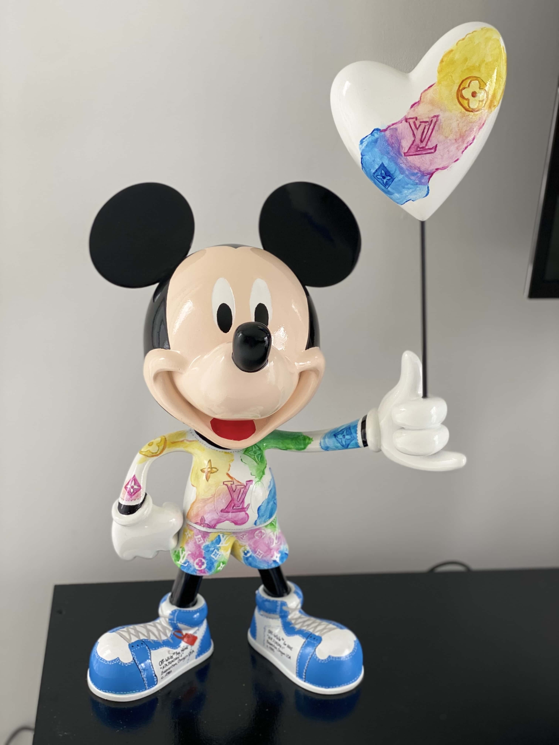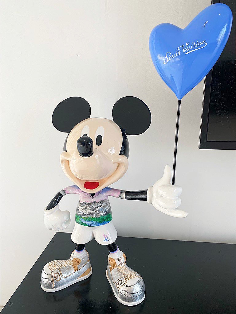 En 2019 l’artiste réalise ses premières statues en résine sur mesure et en édition limitée. Toutes ses statues sont peintes à la main sans pochoir ni aide au dessin. Mickey, un clin d’œil à un début d’existence marquée par la présence réconfortante et ludique de la petite souris de chez disney, c’est ainsi qu’est née son idée. Et n’est ce pas le propre des vrais créateurs de ne jamais perdre le contact avec leurs rêves d’enfant et de transformer cet univers imaginaire en œuvres artistiques.