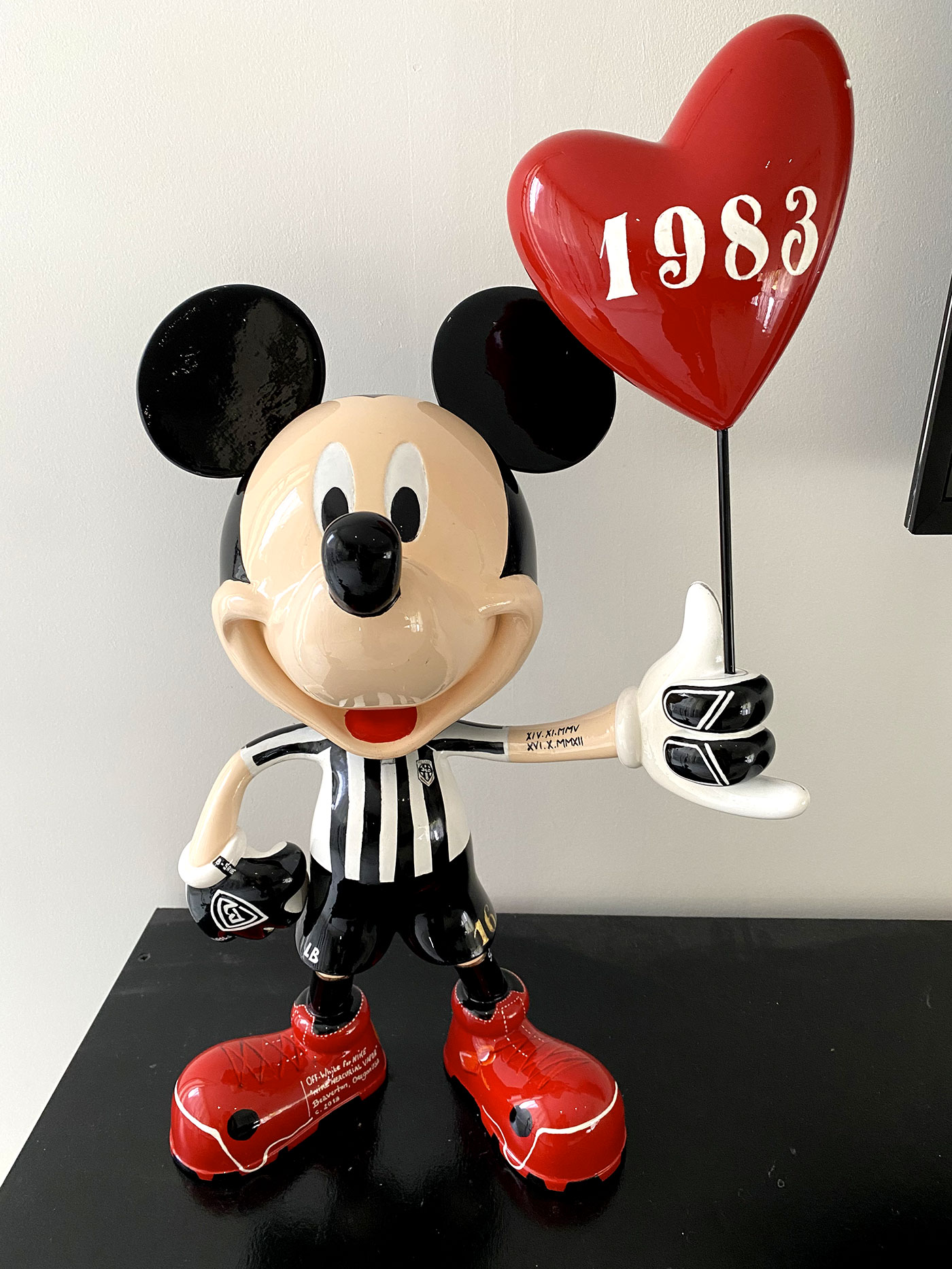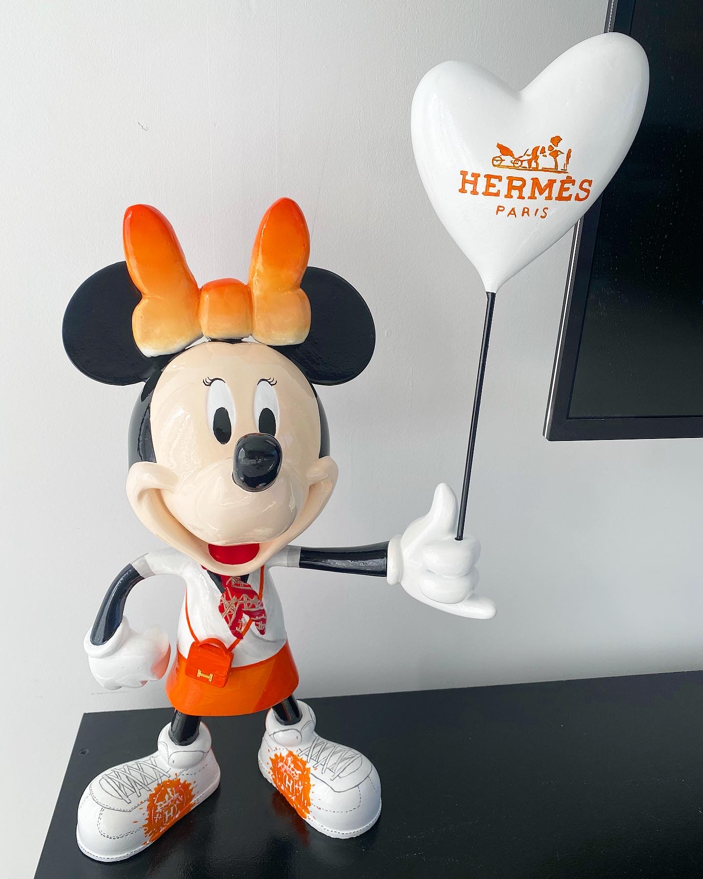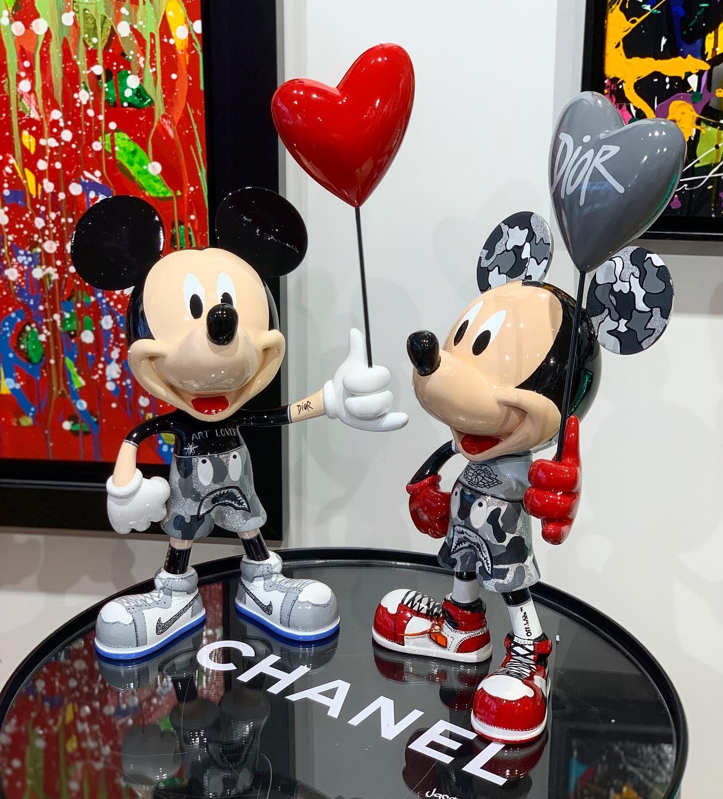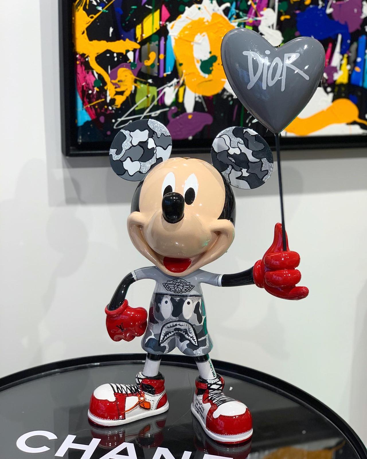 En 2019 l’artiste réalise ses premières statues en résine sur mesure et en édition limitée. Toutes ses statues sont peintes à la main sans pochoir ni aide au dessin. Mickey, un clin d’œil à un début d’existence marquée par la présence réconfortante et ludique de la petite souris de chez disney, c’est ainsi qu’est née son idée. Et n’est ce pas le propre des vrais créateurs de ne jamais perdre le contact avec leurs rêves d’enfant et de transformer cet univers imaginaire en œuvres artistiques.