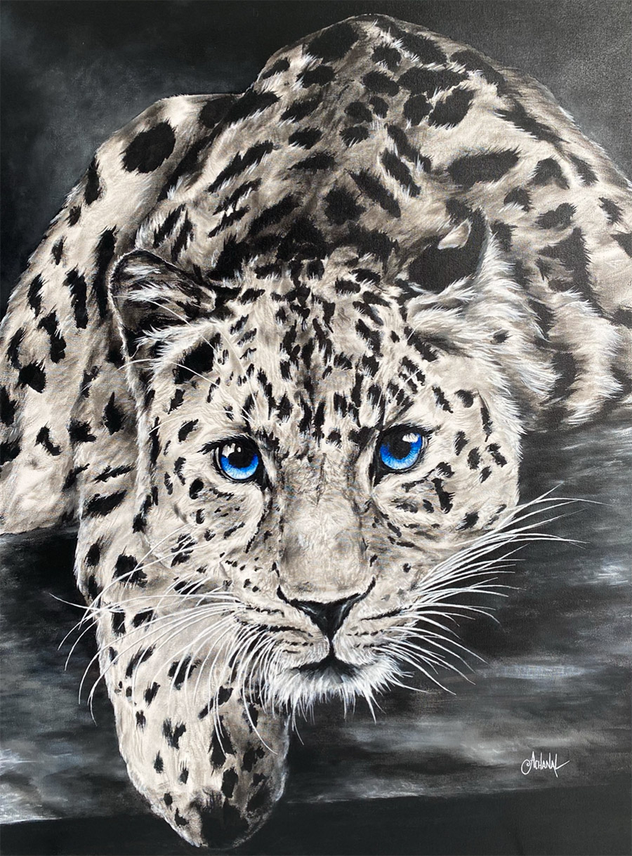 L’artiste confirme une sensibilité très proche de la nature et des animaux qui l’inspire particulièrement mais apprécie aussi la revisite de grandes œuvres, ce sont ses deux domaines de prédilection. Avec toujours un souci du détail exacerbé et la mise en lumière de ses palettes de gris.